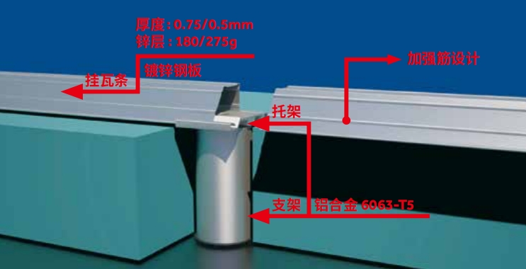 挂瓦系统主要由吕格金属挂瓦系统组成,对屋面瓦起到支撑稳固作用,同时兼具美观性。吕格金属挂瓦系统为拥有设计专利的高性能安全挂瓦支架 系统,具备以毫米为单位的高低调节功能,插入式挂瓦条快速安 装,采用优质的铝合金材质,安全稳固。可以配合抗风搭扣紧固 件系统一起使用。